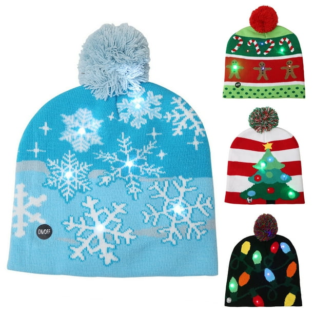 Cheers Snowflake Crutch Pompom Elastic Christmas Hat Led Light Warm Knitted Beanie Walmart Ca